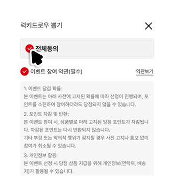 럭키드로우 뽑기 버튼 클릭