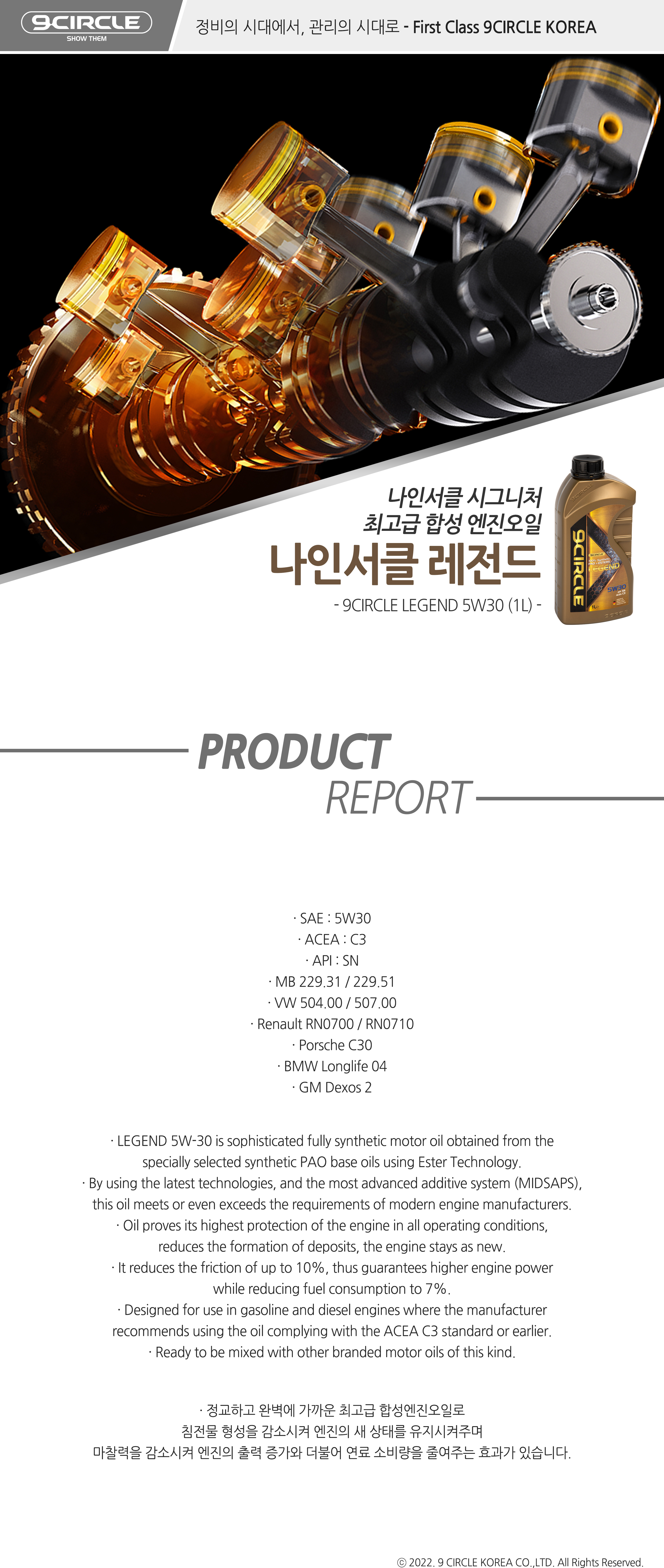 • 나인서클 합성엔진오일 레전드 5W30(1L)