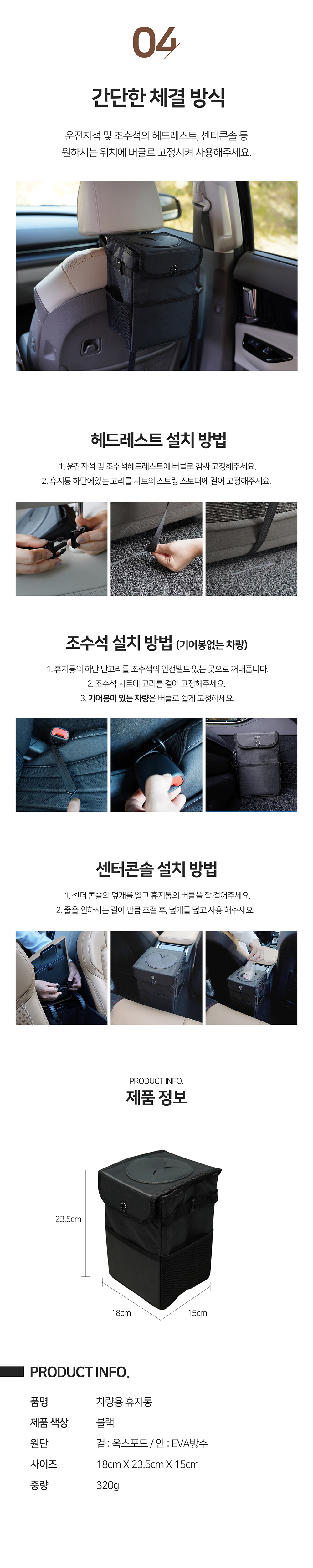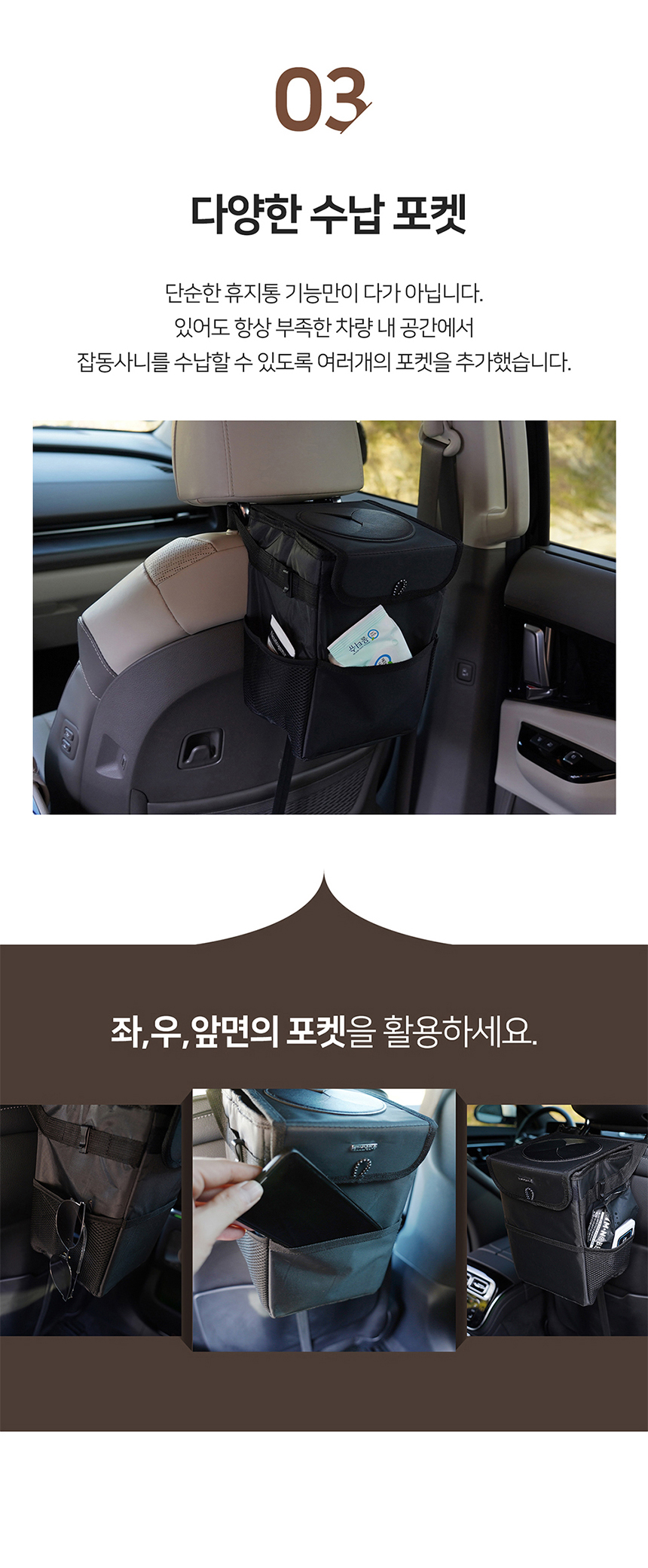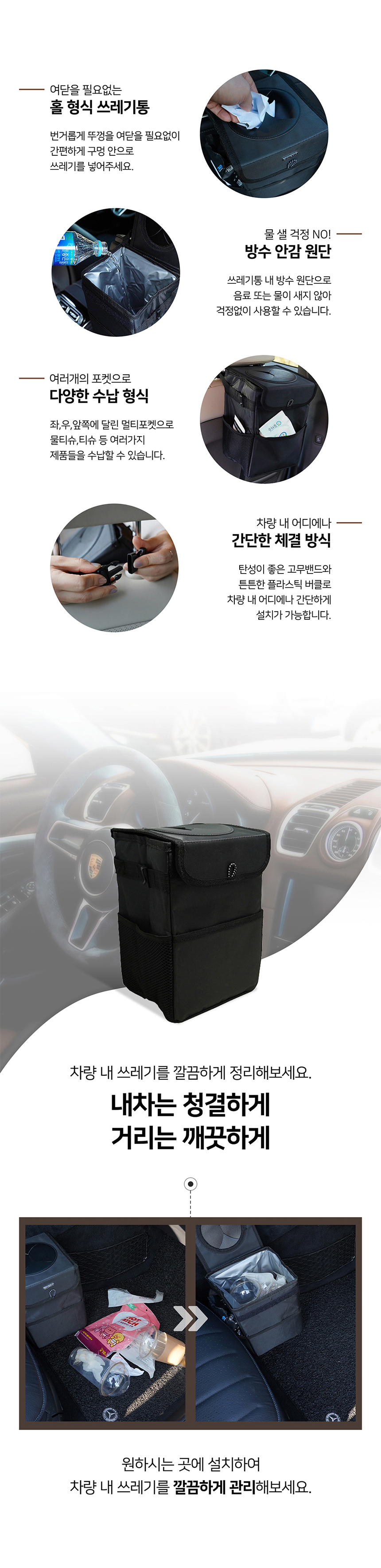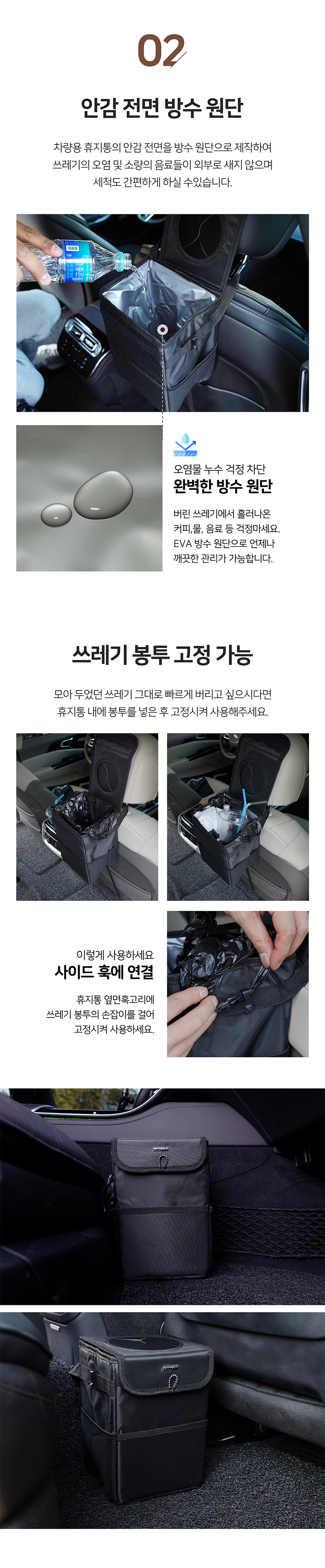 • 엠노블 차량용 휴지통 뒷자석 쓰레기통 수납 자동차 정리함