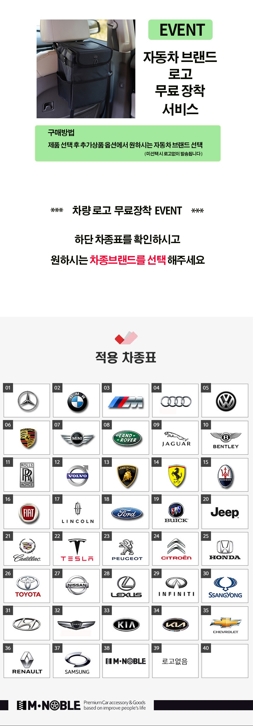 엠노블 차량용 휴지통 뒷자석 쓰레기통 수납 자동차 정리함