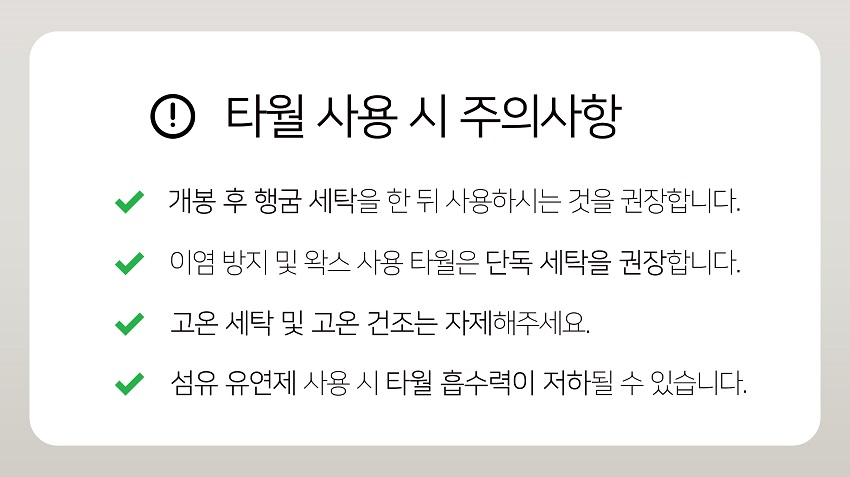 털 빠짐이 없어 깨끗하고 안전한 타월입니다.