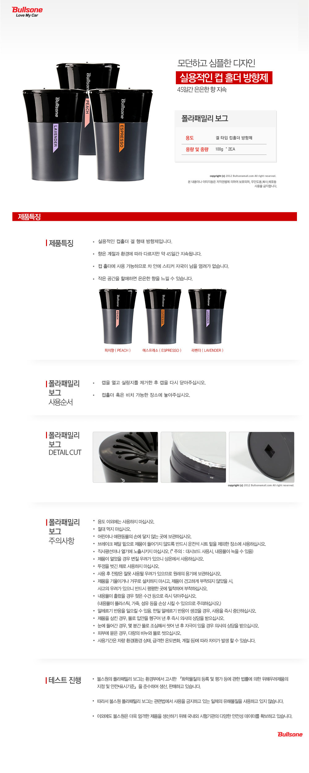 •품목 : 일반 생활화학제품(방향제) •모델명 : 폴라프레쉬 보그 라벤더, 에스프레소, 피치