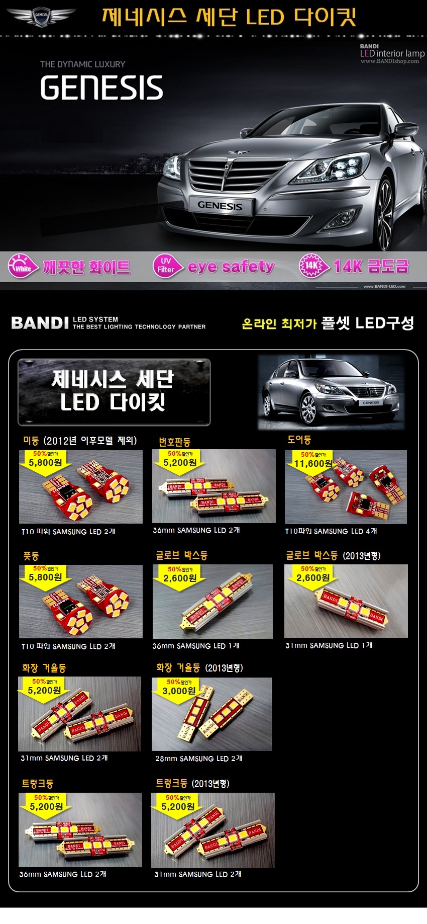 • 반디LED (제네시스) 전용 차량용LED실내등