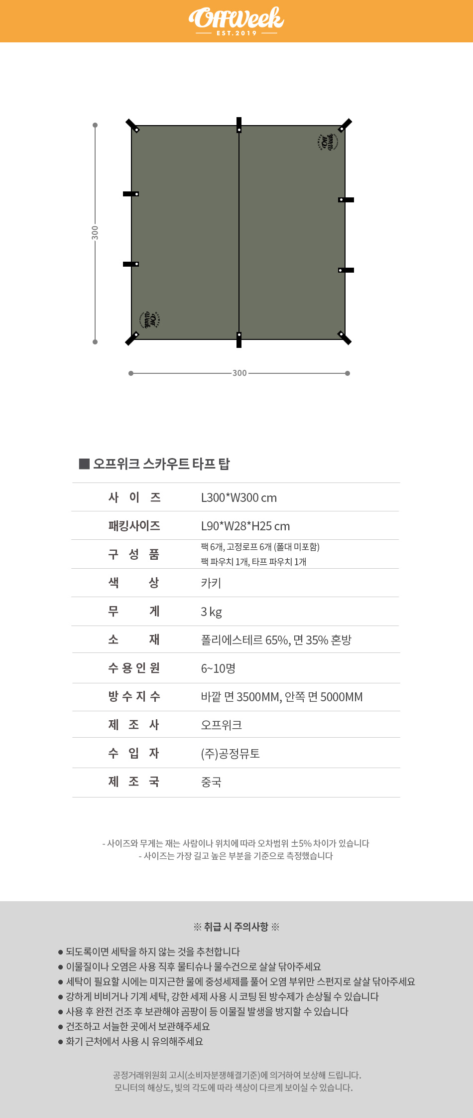 • [뮤토]오프위크 스카우트 타프 탑(폴대 없음)