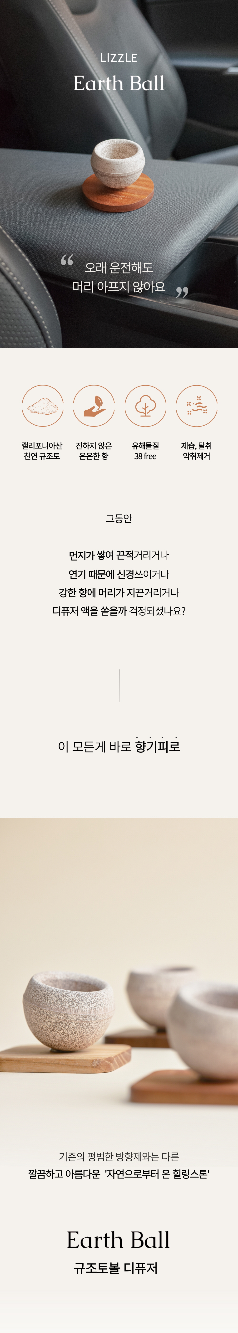 • 라이즐 규조토볼 차량용 천연디퓨저 원형 - 마호가니