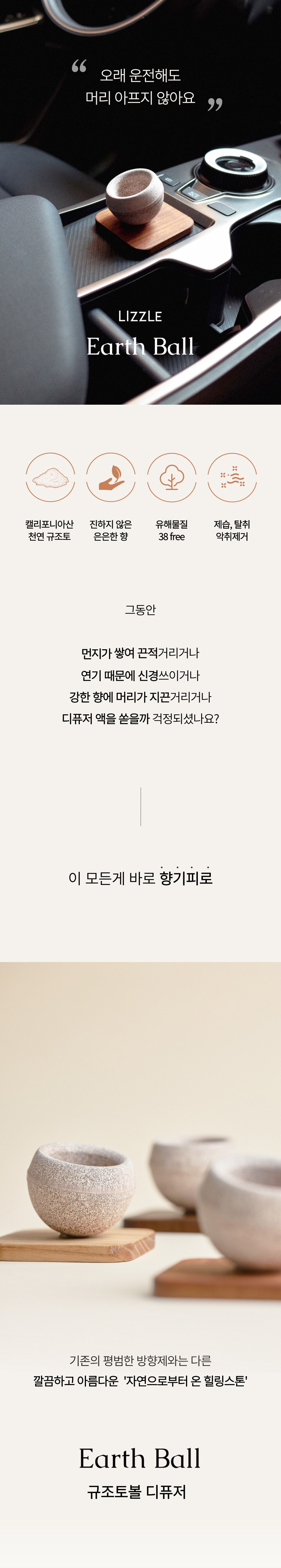 라이즐 규조토볼 차량용 천연디퓨저 사각 - 월넛(호두나무)