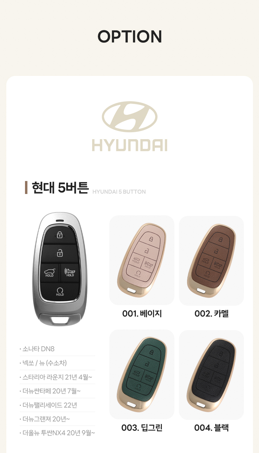 자동차 가죽 키케이스 차키커버 현대 기아 DCAC-KFLT